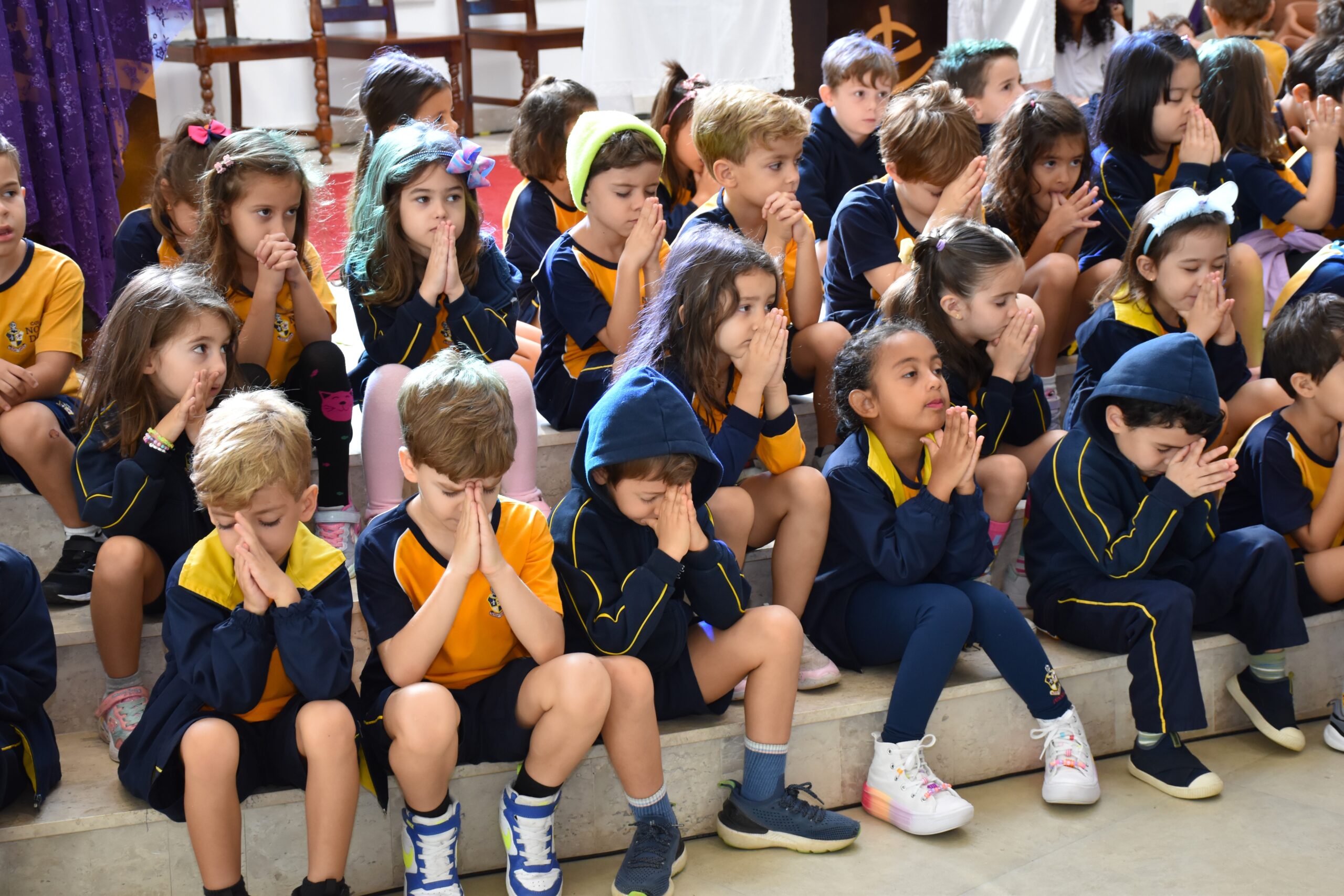 A ação pastoral e o ensino religioso introduzem os quatro pilares da Educação de Santa Cruz: ser família, construir respeito, levar esperança e educar mente e coração.