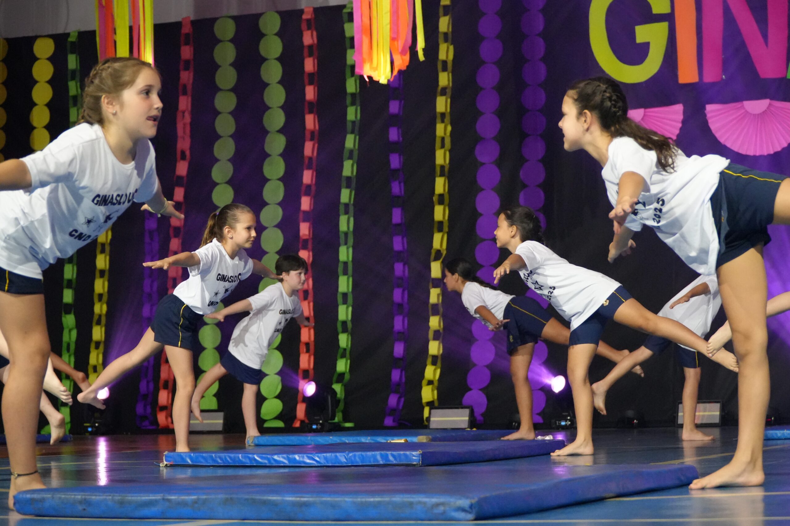 Por Beatriz CarvalhoNossos alunos do 4º ano trouxeram muita energia e determinação para o Ginasloucos, um projeto de ginástica geral desenvolvido durante as aulas de Educação Física. As coreografias encantadoras exploraram a consciência corporal, a autoconfiança, o repertório motor e a superação de limites com movimentos básicos de solo e saltos da ginástica.